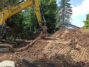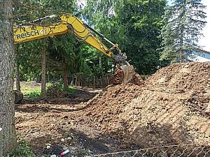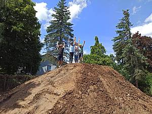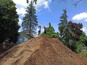 Der Hügel für den Startpunkt der Strecke ist aufgeschichtet.